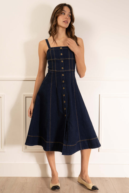 Camille Open Back Denim Dress