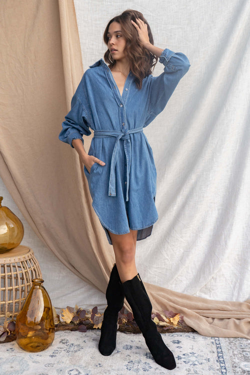 Jen Belted Denim Midi Dress