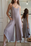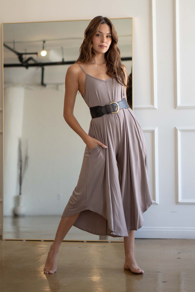 Introducing our Jade Slouchy Fit Jumpsuit. With its thin straps, relaxed fit, and wide leg bottoms, this jumpsuit is perfect for lounging. Plus, pockets included for added convenience. Available in two colors, this light weight jumpsuit is a must-have for every fashionista's loungewear collection.