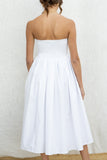 Step out in style with the Karla Strapless Midi Dress! This flirty yet functional dress features a strapless design and flared midi length, making it perfect for any occasion. The smocking on the back ensures a comfortable and flattering fit, while the front pockets add a touch of convenience. Don't miss out on this must-have piece!