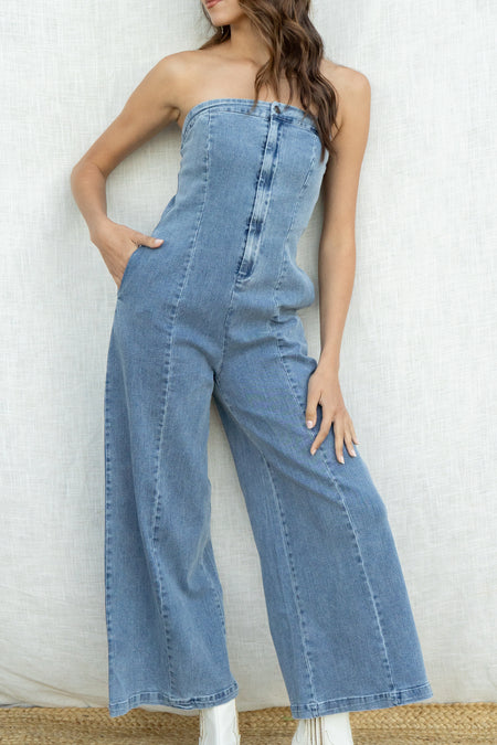 Zip Up Strapless Jumpsuit